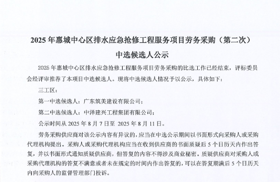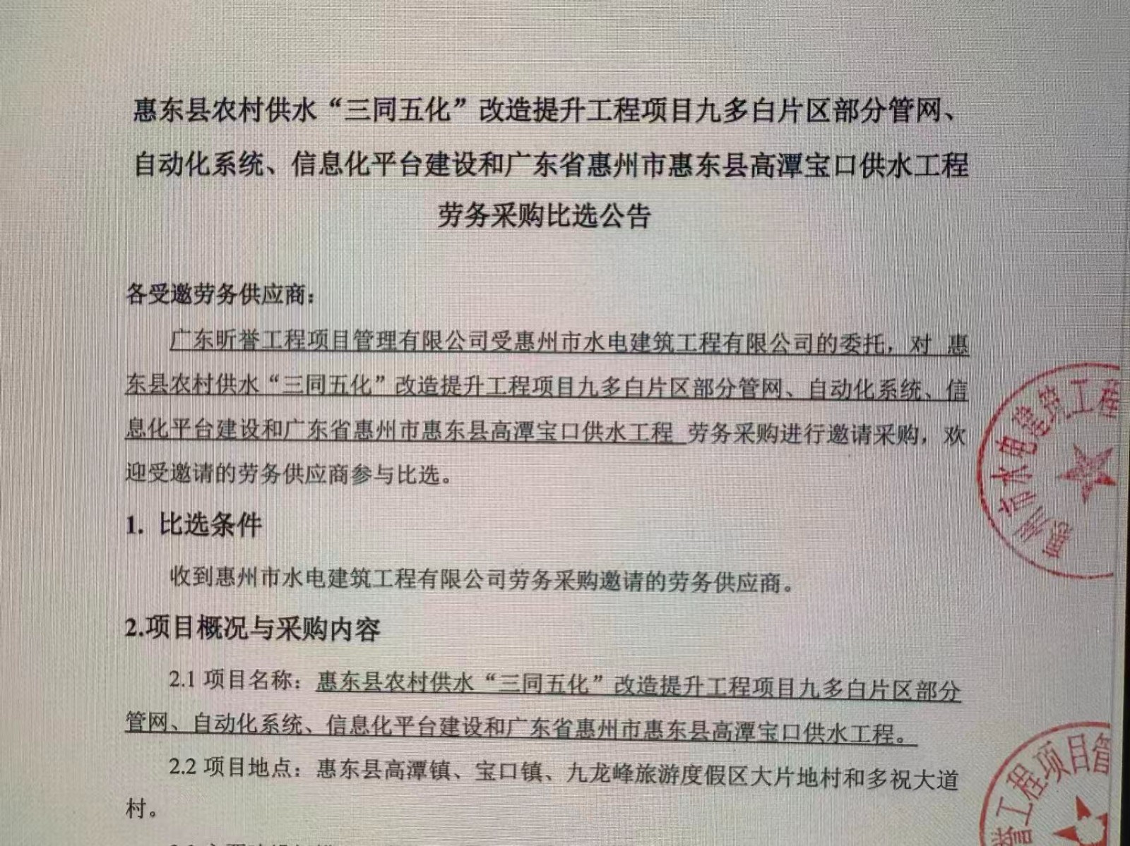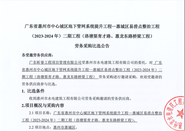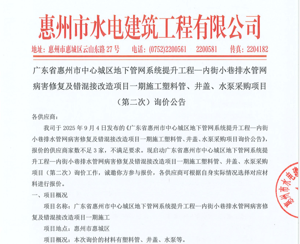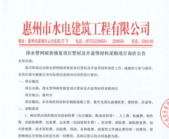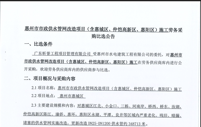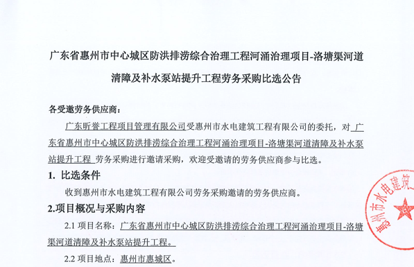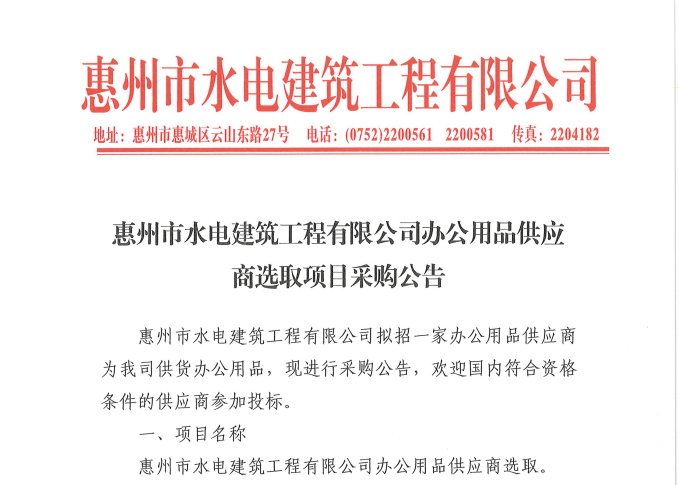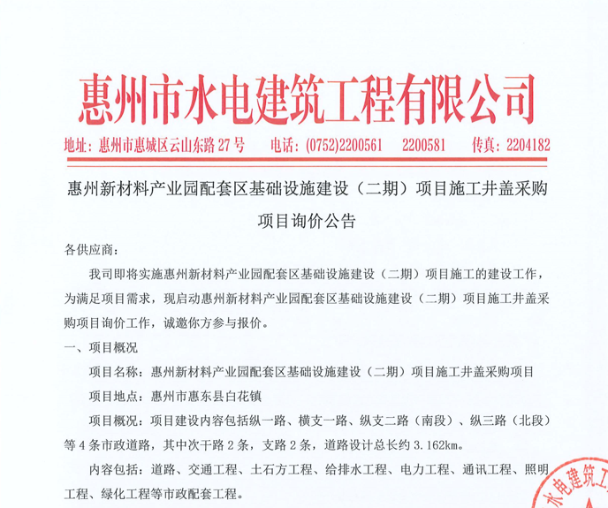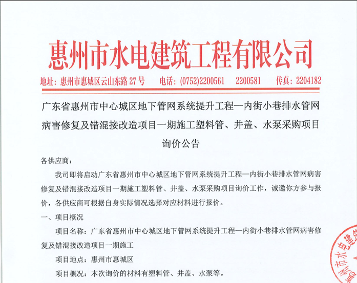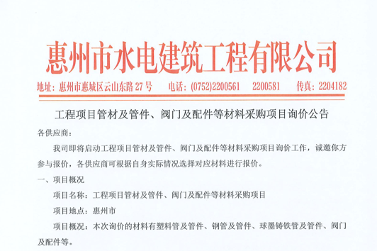 惠州市水電建筑工程有限公司成立于一九六四年四月,隸屬惠州市水務集團有限公司,是一家國有綜合性施工企業(yè),主營水利水電工程、房屋建筑、市政工程等施工業(yè)務。公司擁有水利水電工程施工總承包一級、建筑工程施工總承包一級、市政公用工程施工總承包一級、公路工程施工總承包三級,公路路基、路面及建筑裝修裝飾專業(yè)承包二級,環(huán)保工程、機電安裝、河湖整治、輸變電工程專業(yè)承包三級等經(jīng)營資質(zhì)……
